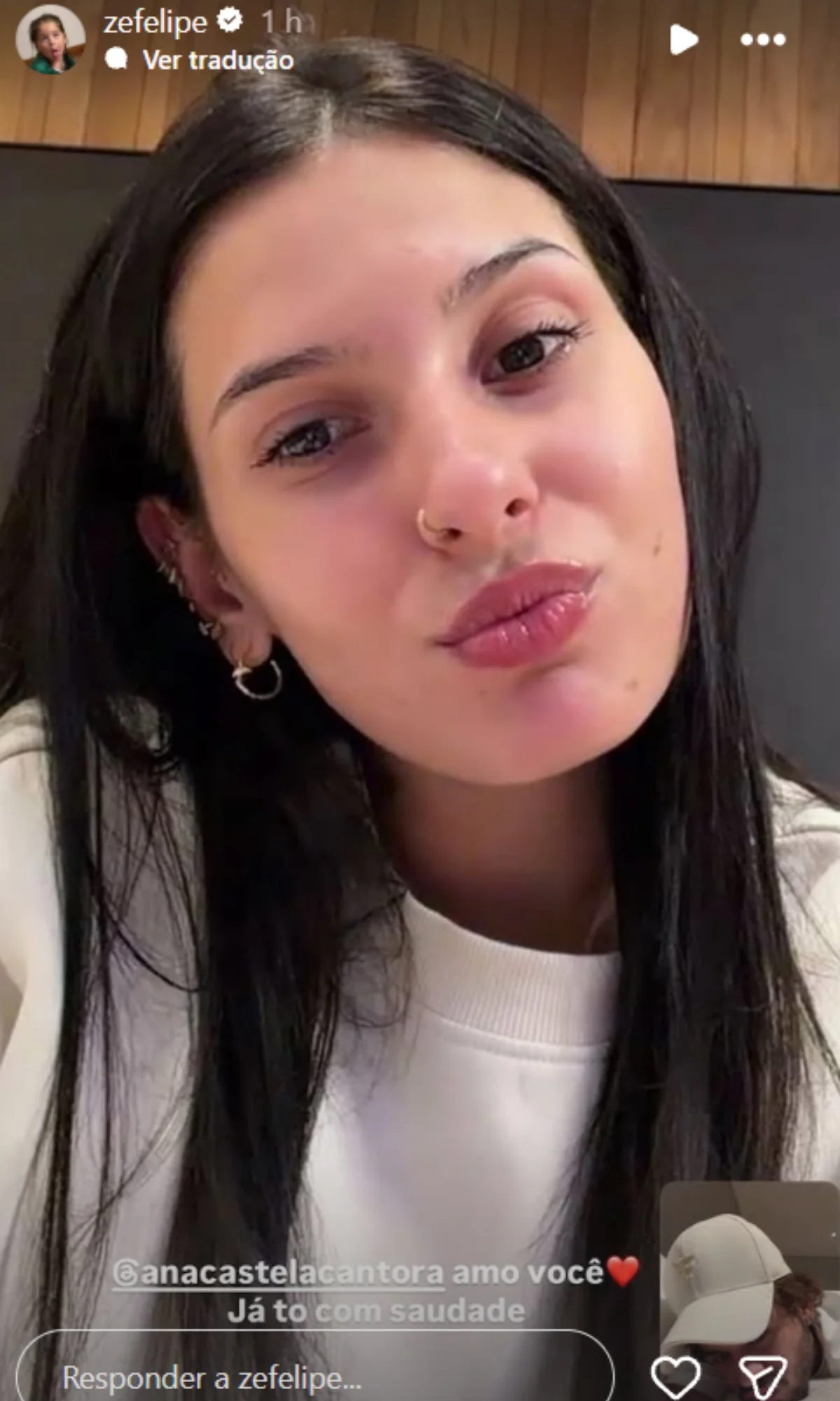 Ana Castela também republicou o registro e respondeu no mesmo tom: “Vim embora e já com saudades”.