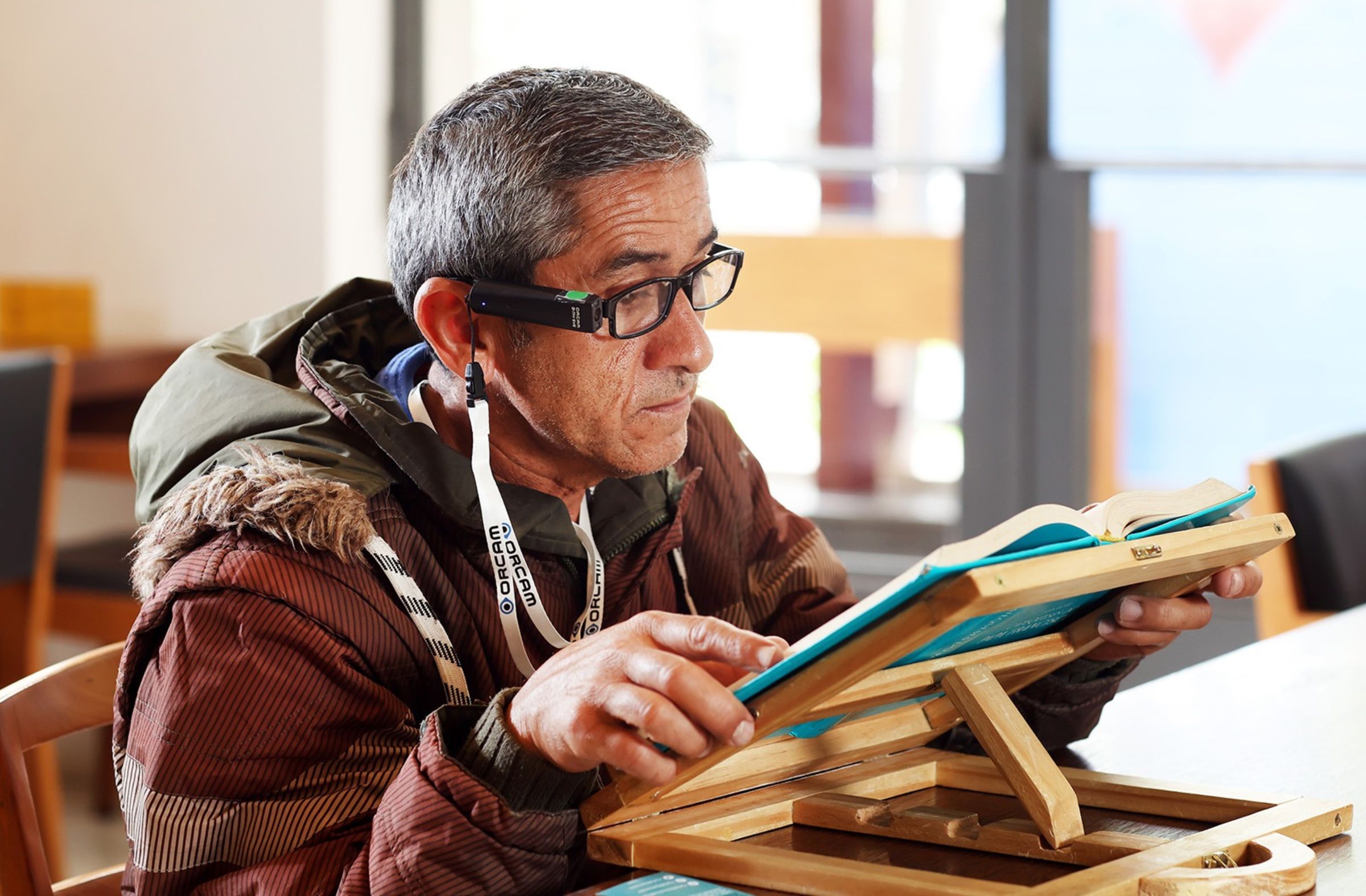 A reaproximação com os livros veio de forma inesperada — por meio de um par de óculos inteligentes que transformam, em tempo real, o texto escrito em áudio.