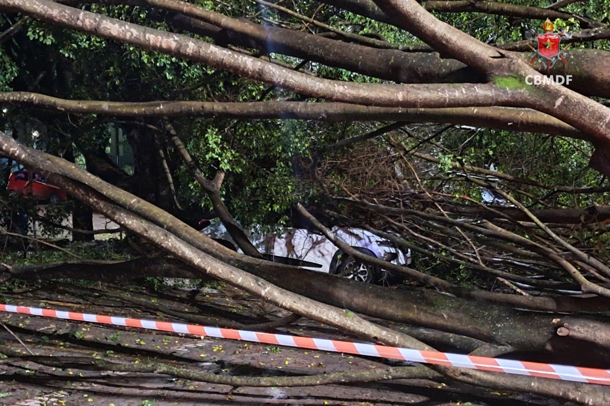 Devido a grande quantidade de galhos que caíram no estacionamento, os bombeiros precisaram usar o guindaste da corporação para desobstruir a área. A Neoenergia e a Novacap foram acionadas para o local.
