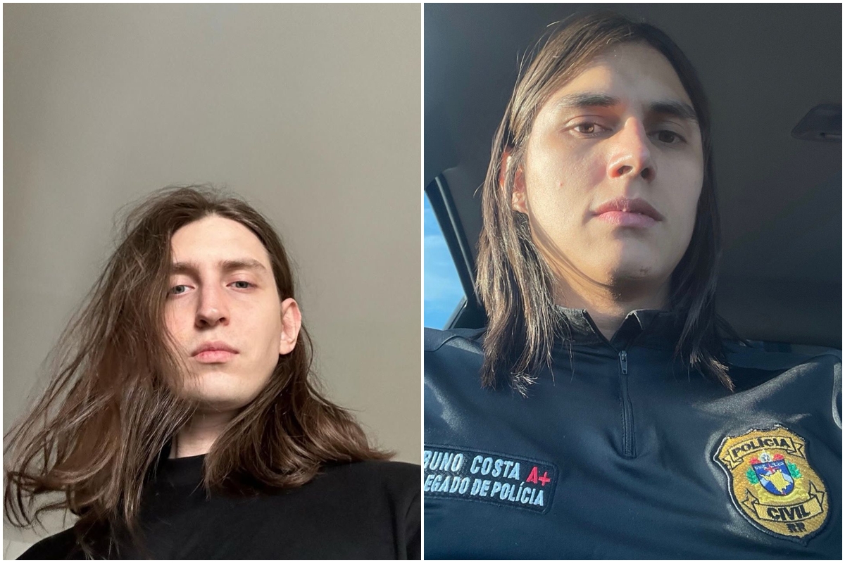 O delegado Bruno Gabriel Costa (foto à esquerda), da Polícia Civil de Roraima (PCRR), viralizou nas redes sociais depois que internautas passaram a compartilhar fotos comparando sua aparência à do influenciador Felipe Bressanim Pereira, mais conhecido como Felca (foto à direita). Em poucos dias, o policial ultrapassou a marca de 70 mil seguidores.