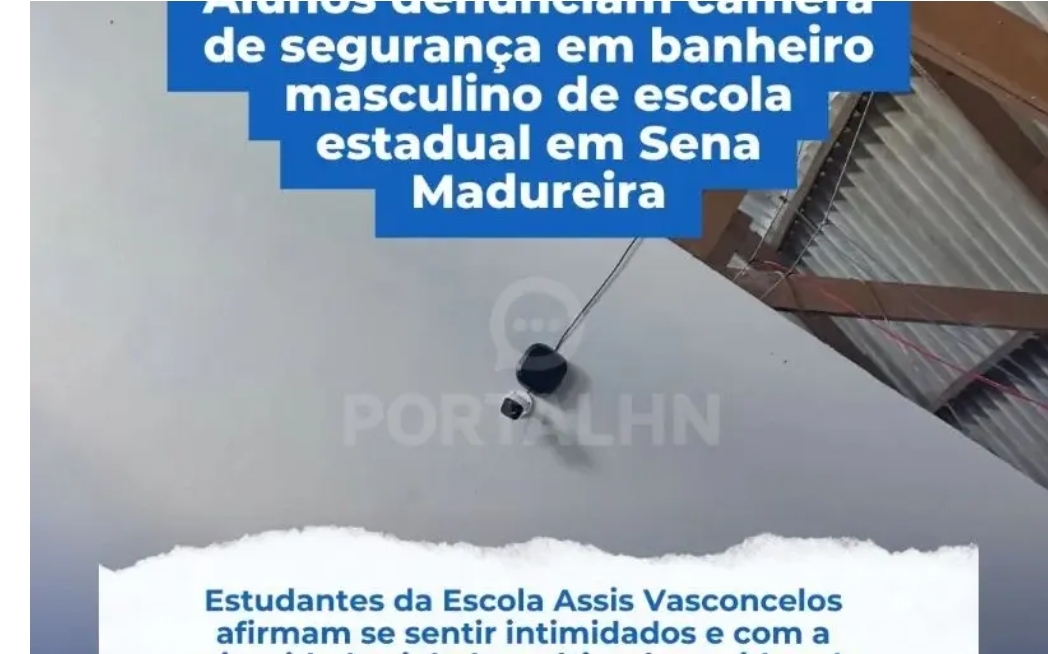 Após alunos denunciarem a presença de uma câmera de segurança no banheiro masculino da Escola Estadual Assis Vasconcelos, em Sena Madureira, a direção da unidade se pronunciou para esclarecer o caso. A denúncia ganhou repercussão após estudantes relatarem a existência do equipamento em um espaço considerado privativo.