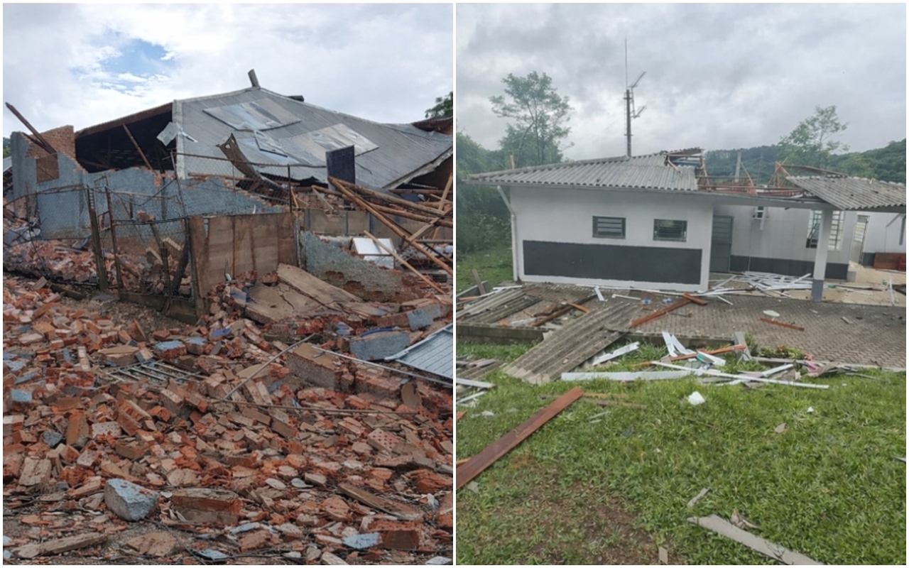 Fortes ventos e chuva intensa atingiram o município de Farroupilha (RS), na Serra Gaúcha, a cerca de 100 quilômetros da capital Porto Alegre (RS), nesta terça-feira (23/12). Além de árvores caídas e várias casas atingidas pelo temporal – informações dão conta de ao menos 15 residências -, a Escola Municipal de Ensino Fundamental José Chesini também foi totalmente destelhada e alagada.