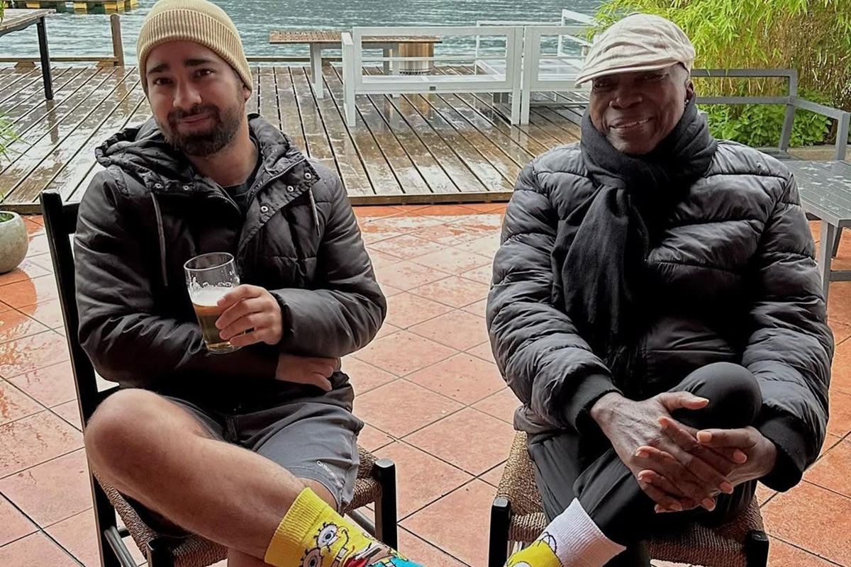 Milton Nascimento e o filho, Augusto, posam juntos e sorridentes