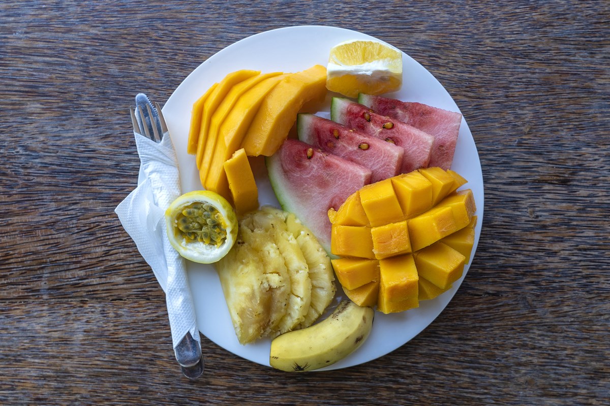 3 mangas maduras descascadas e picadas