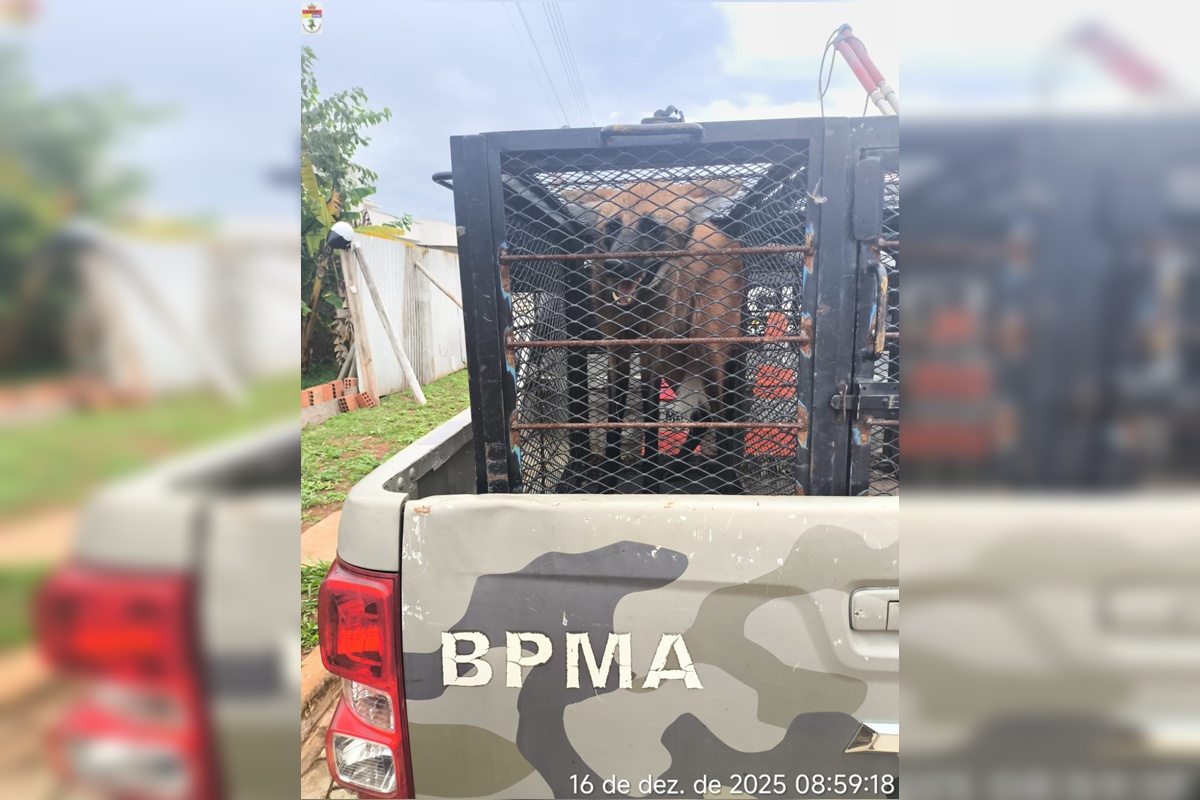 De acordo com o BPMA, quando a equipe chegou ao local, o animal apresentava um comportamento defensivo e estava acuado.