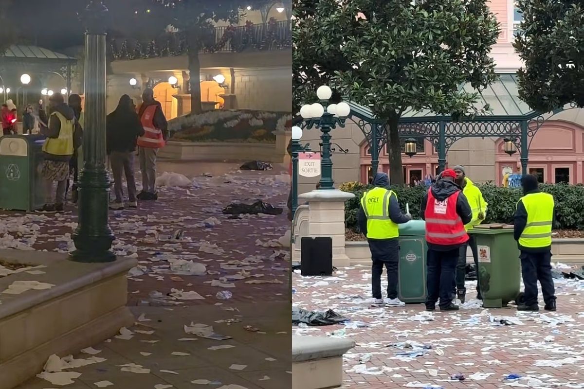 Vídeos mostram lixos espalhados pelo chão da Disneyland Paris