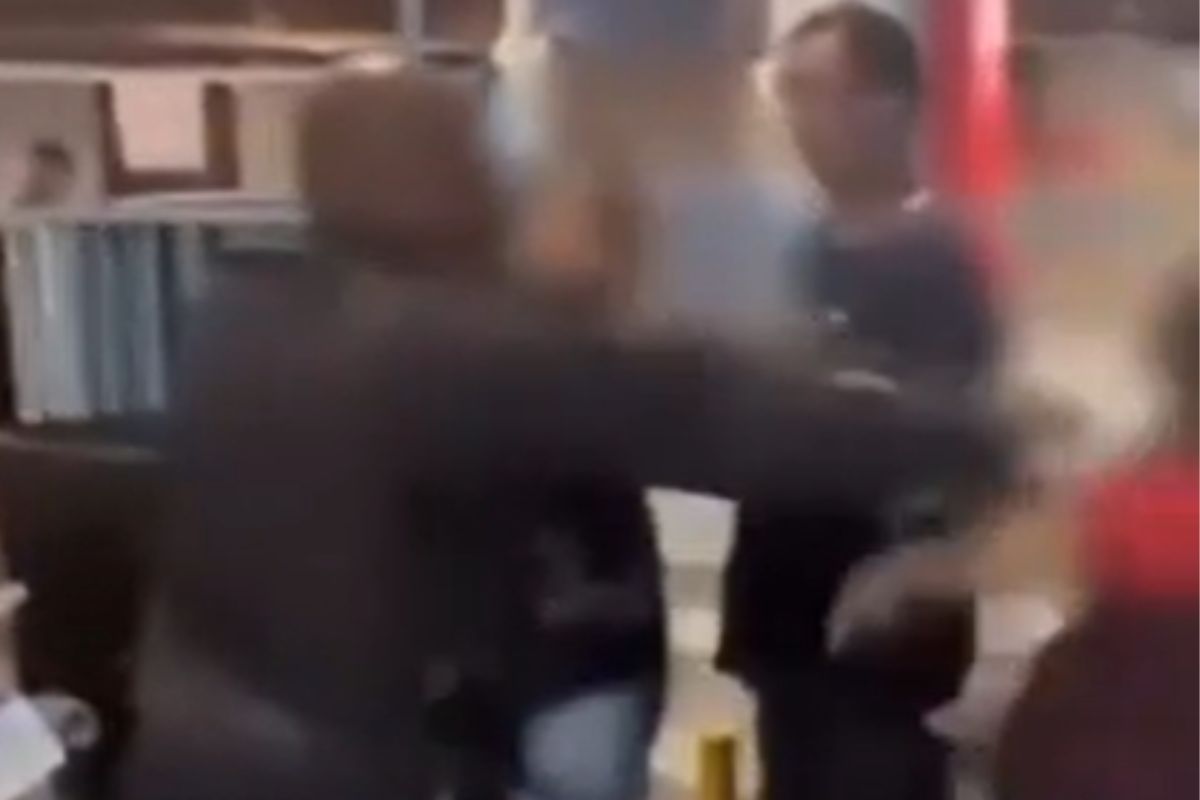 As imagens registram o momento em que o militar atinge a mulher durante a abordagem no estabelecimento. Confira: