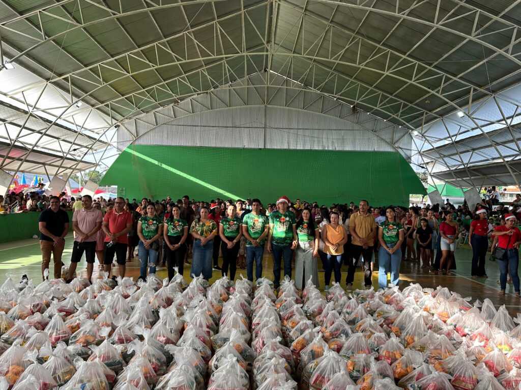 A Prefeitura Municipal de Rodrigues Alves promoveu, na tarde desta terça-feira (23), o Natal Solidário, uma grande ação social que reuniu centenas de famílias do município em um clima de confraternização, solidariedade e celebração do espírito natalino. A iniciativa foi liderada pelo prefeito Salatiel Magalhães, com o apoio do vice-prefeito Neto do Jamilson, reforçando o compromisso da gestão com o cuidado social e a valorização das famílias rodriguenses.