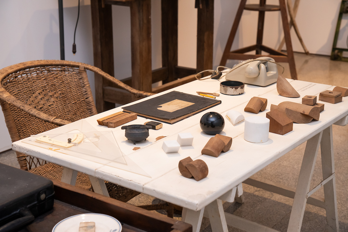 A exposição recria minuciosamente esse último espaço, revelando não apenas o ambiente de trabalho, como também objetos pessoais que oferecem um vislumbre de sua intimidade.