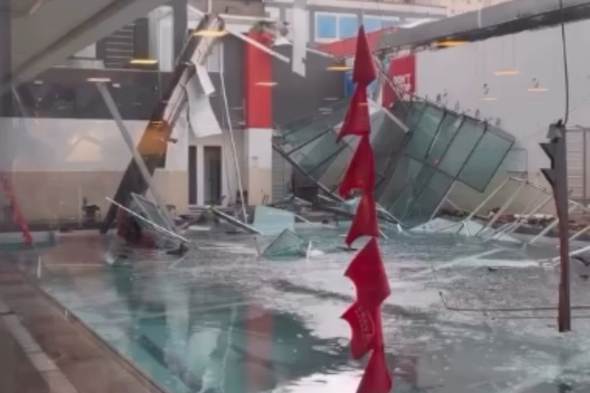 Teto de academia desaba sobre piscina após tempestade na Grande SP