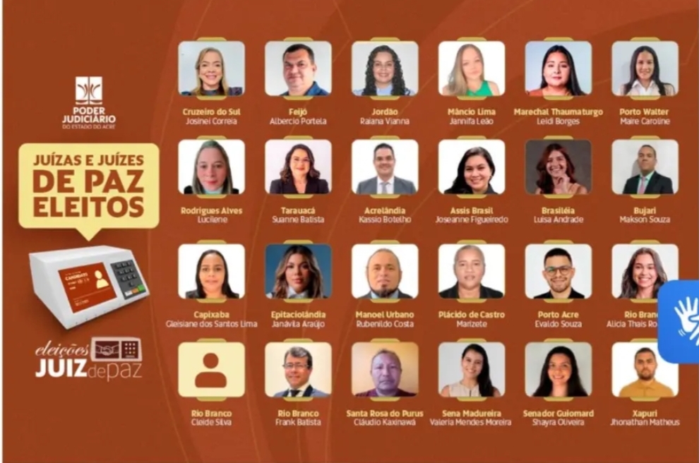 Veja os eleitos da primeira eleição de juízas e juízes de paz em todo o Acre; confira
