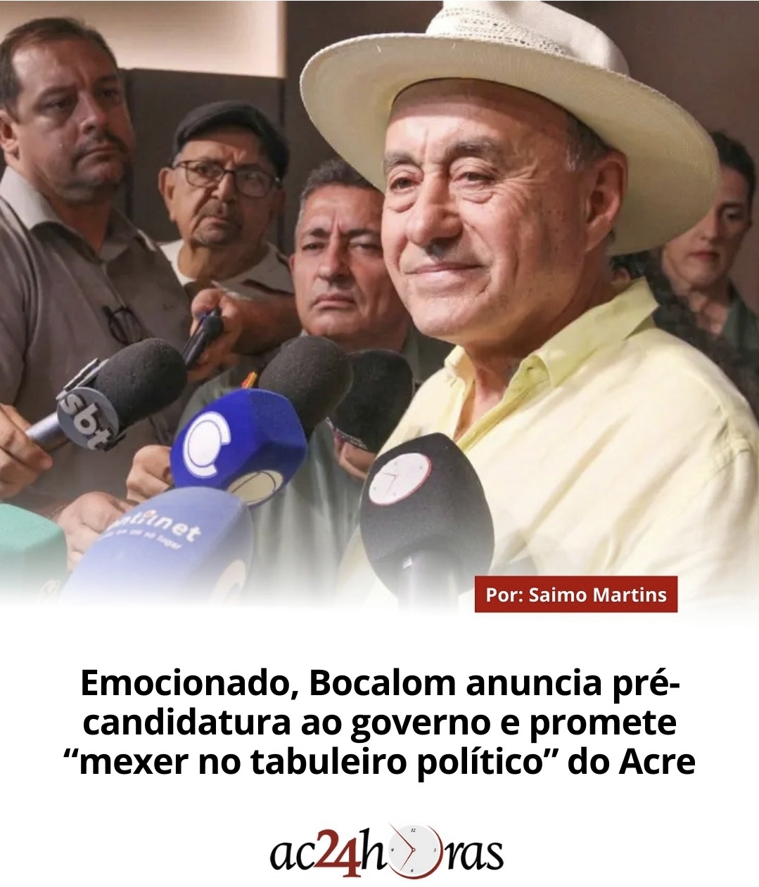 Bocalom abriu a entrevista agradecendo a presença maciça de apoiadores, secretários da gestão e políticos, como o vereador Antônio Moraes, também do PL. Na sequência, afirmou que chegou o momento de anunciar sua pré-candidatura diante dos constantes questionamentos após sua reeleição à Prefeitura de Rio Branco, em 2024, ainda no primeiro turno.