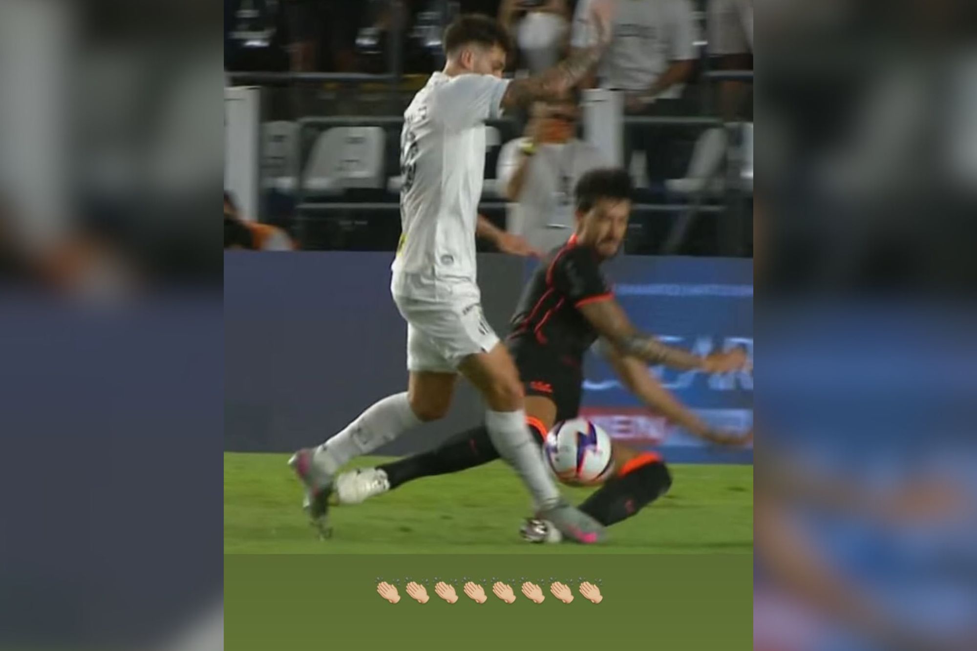 Árbitro Lucas Canetto Bellote marcou falta de Gustavo Henrique em Lautaro Díaz. Zagueiro do Corinthians discordou da decisão