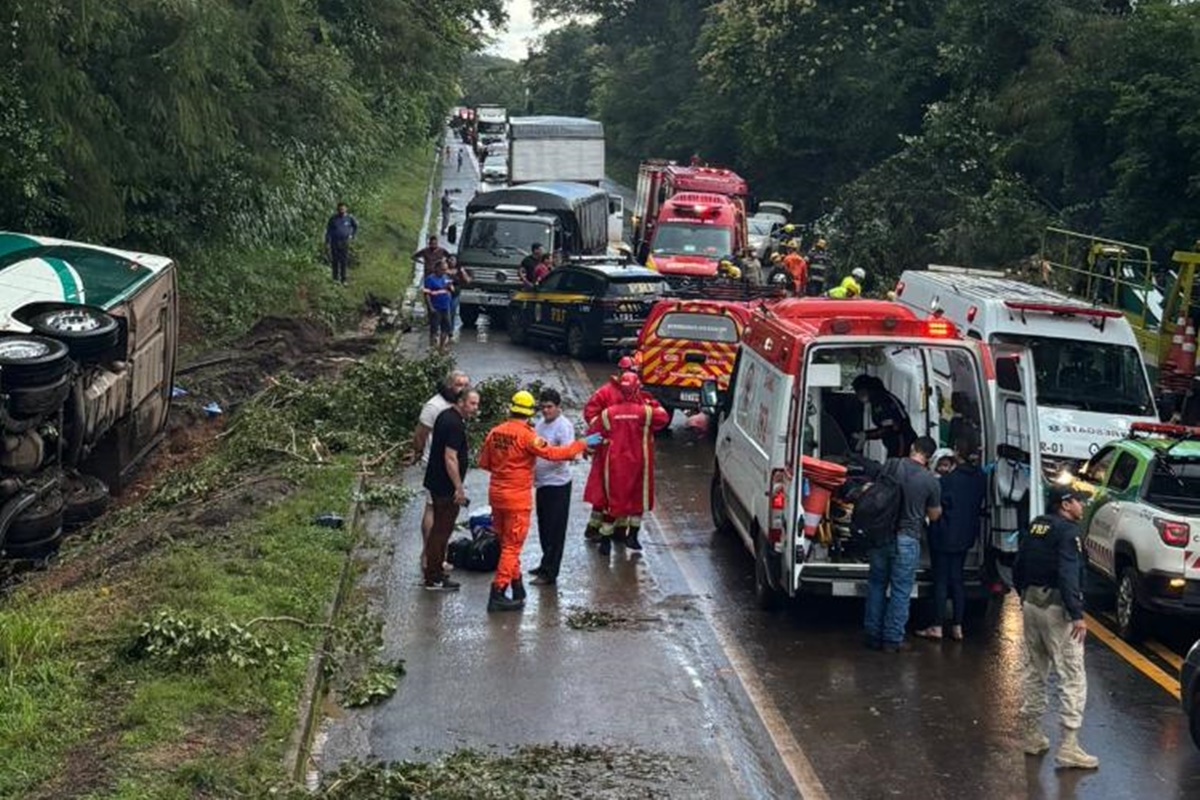 Ônibus saiu de Goiânia com destino a São Félix do Xingu (PA). Cinco pessoas tiveram ferimentos leves e foram levadas ao hospital da região