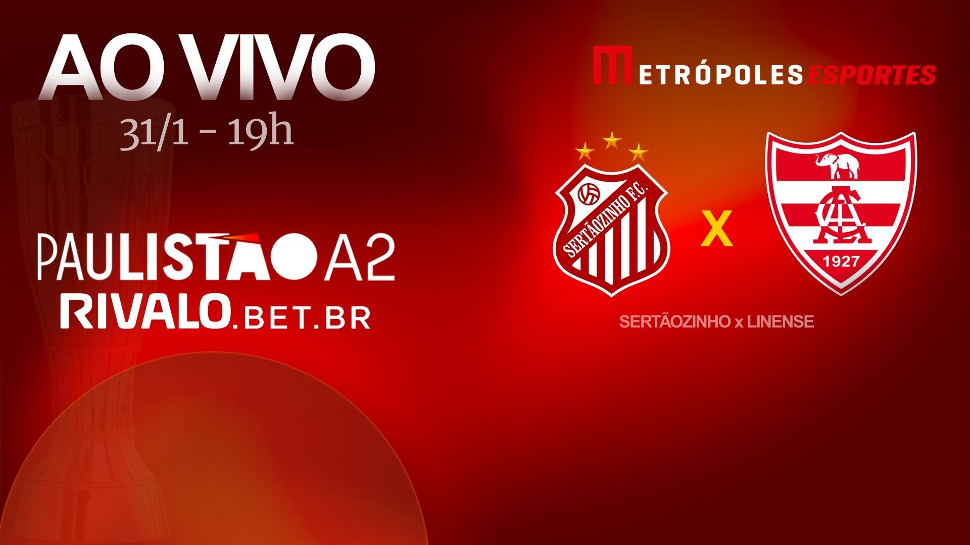 Partida é válida pela sétima rodada do Paulistão Série A2 Rivalo 2026 e terá transmissão, ao vivo e exclusiva, pelo Metrópoles Esportes