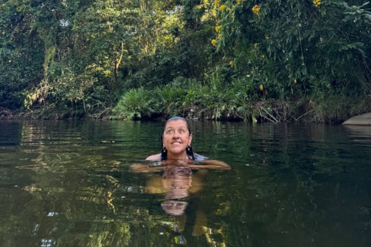 regina Casé encerrou: “Rezo em tudo quanto é canto, na rua na igreja ,no terreiro, mas reza boa mesmo é essa daí em comunhão total com a natureza. Sem as árvores, sem água não há vida, não há nada… Vamos em 2026 ter mais e mais cuidado com os outros ,com a natureza, com essa preciosidade que é a VIDA! Feliz Ano Novo!”.