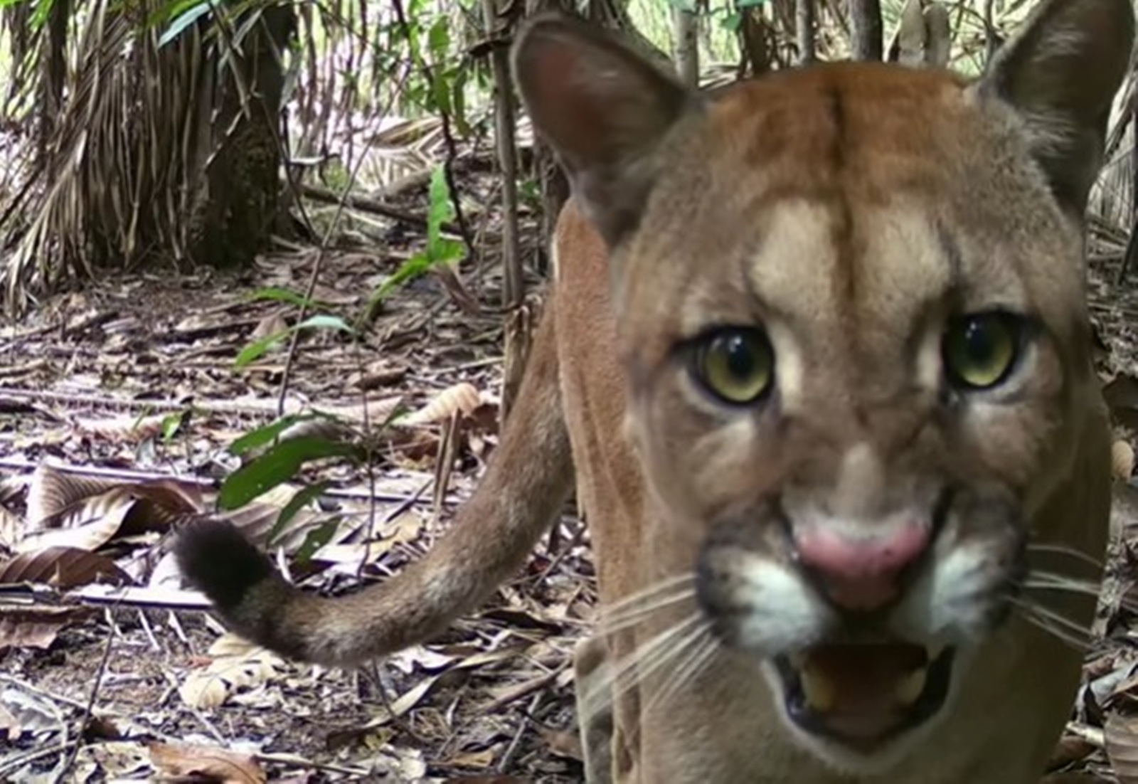 Fábio Baca registrou, por meio de uma câmera de trilha, o momento em que uma onça farejou rastro deixado por ele