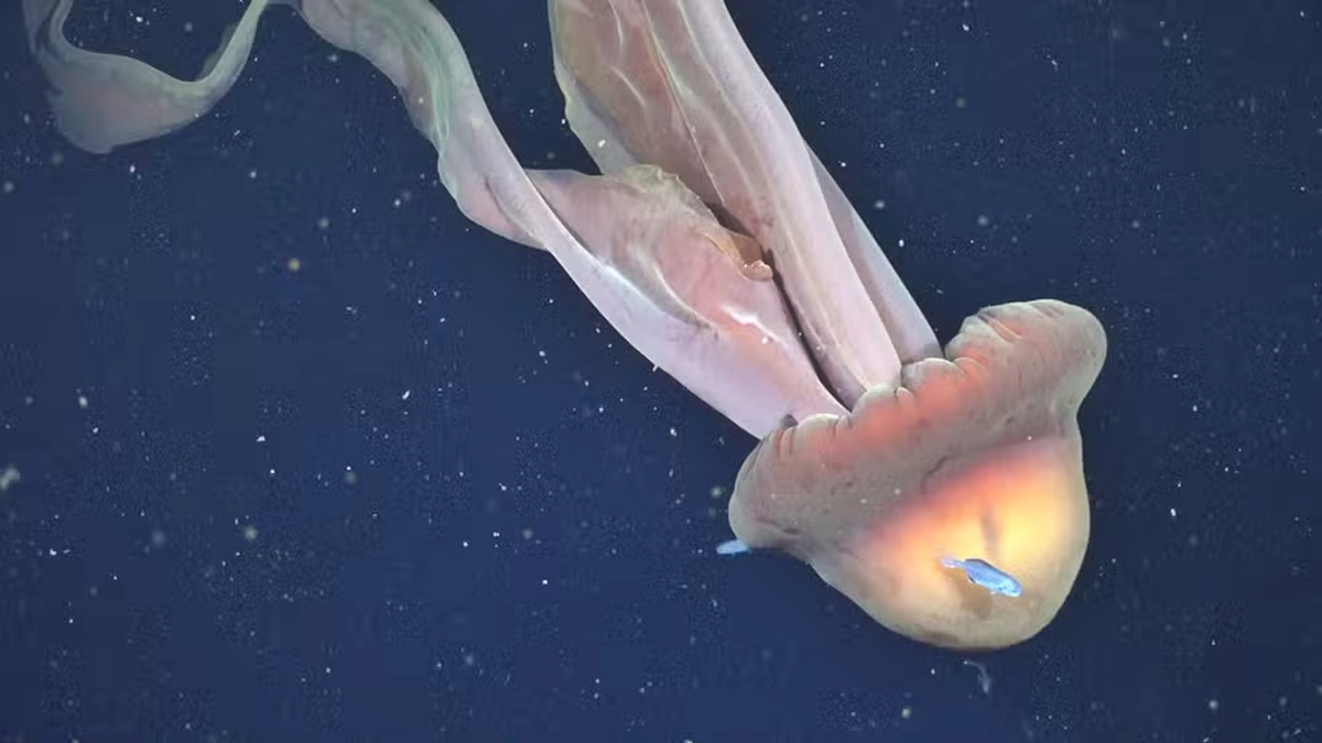 Compartilhar Facebook Twitter Email Copy Link WhatsApp A espécie é conhecida como água-viva fantasma gigante e tem tentáculos que podem chegar até dez metros. O registro foi feito na Argentina Fonte: