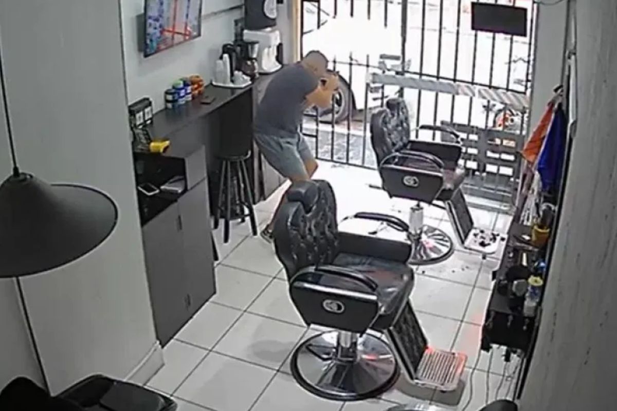 O policial estava cortando o cabelo quando presenciou uma tentativa de roubo a um Porsche e reagiu. O suspeito foi baleado e morreu