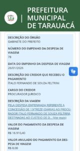 As informações, incluindo os valores e a descrição das despesas, estão disponíveis no Portal da Transparência do município.