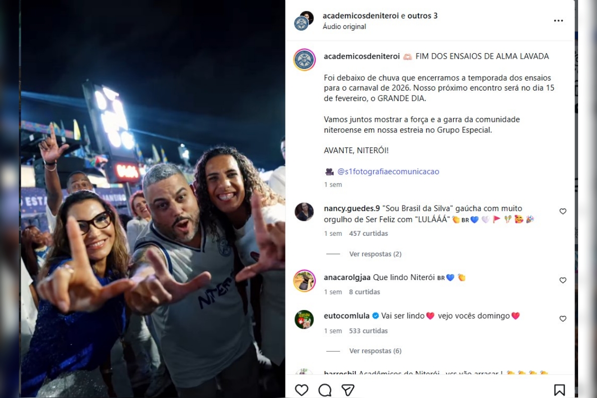 Compartilhar Facebook Twitter Email Copy Link WhatsApp Primeira-dama Janja e ministras Gleisi e Anielle cumpriram agendas com a escola Acadêmicos de Niterói, que acabou rebaixada Fonte: