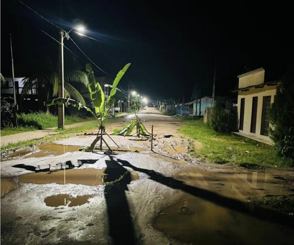 Imagens e vídeos enviados à redação do Extra do Acre mostram as bananeiras plantadas em meio à via, evidenciando o abandono e a insatisfação da população. A iniciativa busca chamar a atenção das autoridades municipais para a necessidade urgente de manutenção e melhorias na avenida.