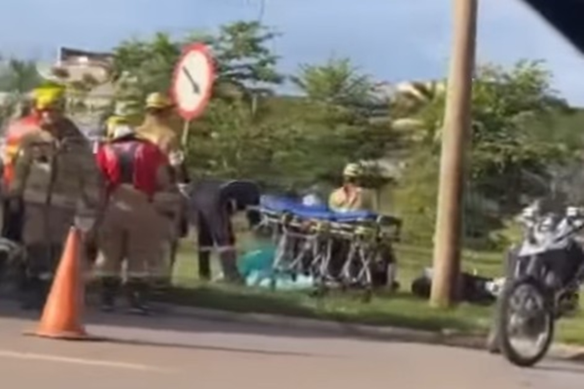 Compartilhar Facebook Twitter Email Copy Link WhatsApp Acidente aconteceu na manhã desta terça-feira (10/2). Segundo relatos prestados a PMDF, a vítima estava perdeu o controle da moto Fonte: