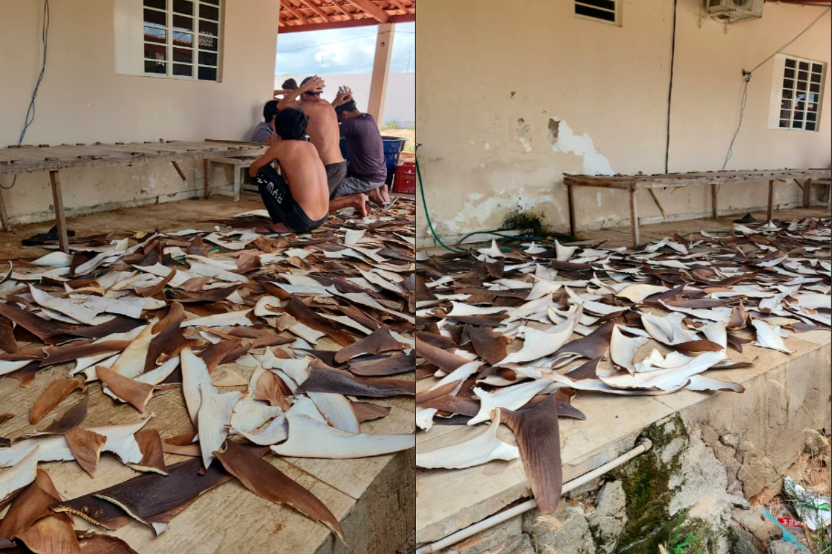Compartilhar Facebook Twitter Email Copy Link WhatsApp Sete pessoas foram flagradas em imóvel usado para secagem e preparo ilegal das partes do animal marinho Fonte: