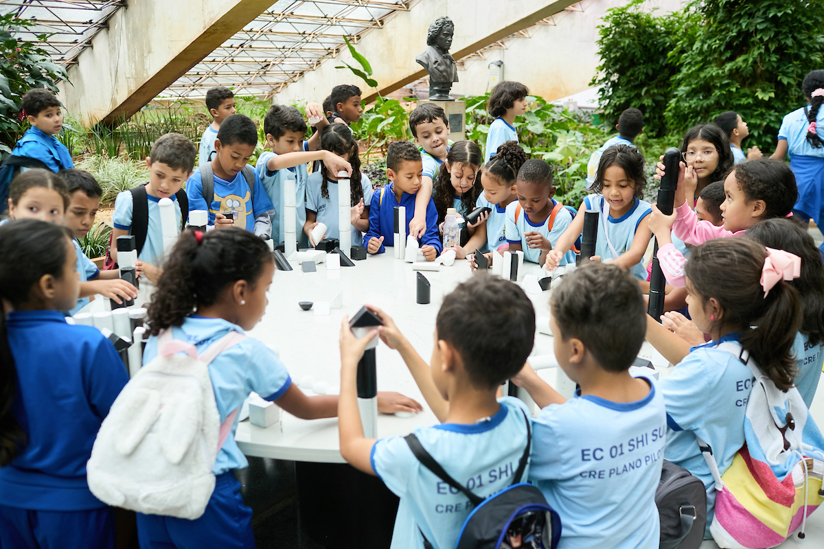 Compartilhar Facebook Twitter Email Copy Link WhatsApp Alunos da Escola Classe 01 do SHI Sul aliam teoria e prática em imersão cultural na mostra É Pau, É Pedra, do artista Sergio Camargo Fonte: