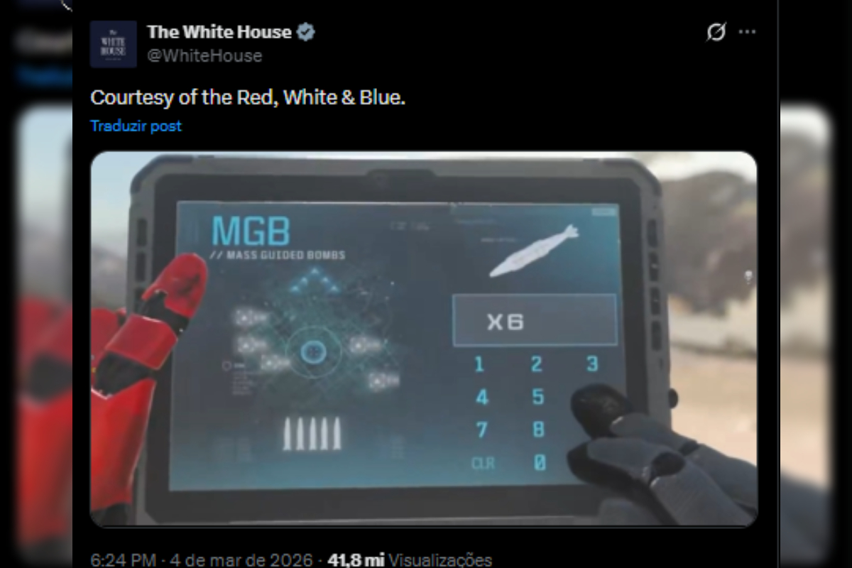 Compartilhar Facebook Twitter Email Copy Link WhatsApp Montagem publicada no perfil oficial mistura cenas do jogo e bombardeios reais e ultrapassa 40 milhões de visualizações Fonte: