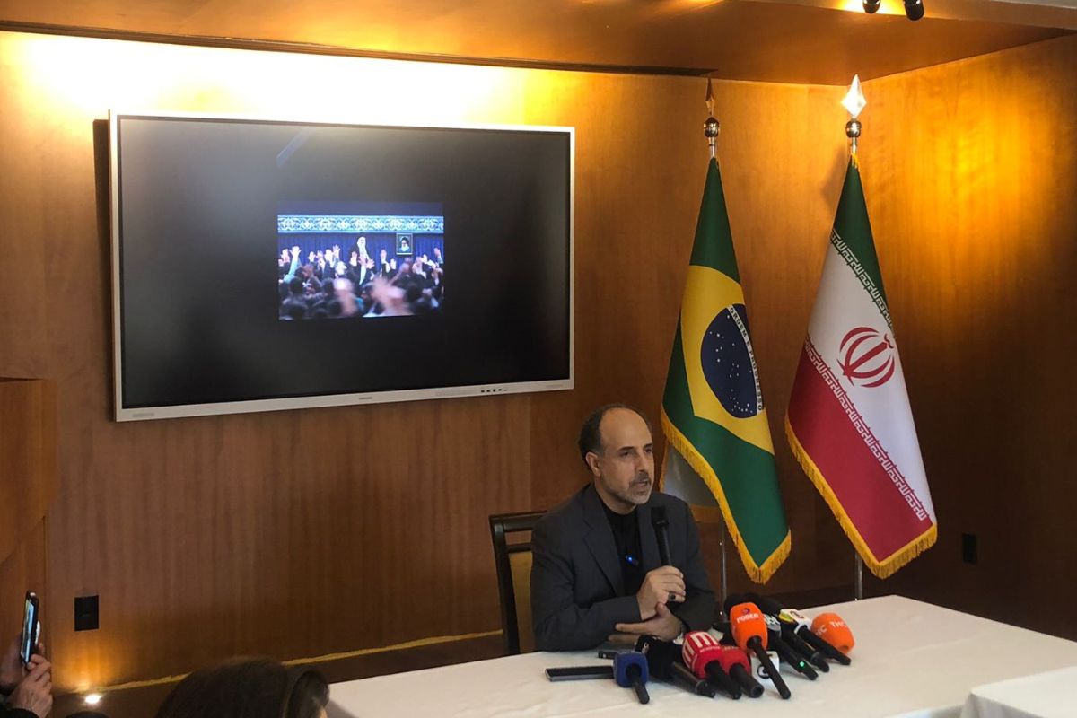 Compartilhar Facebook Twitter Email Copy Link WhatsApp Embaixador iraniano no Brasil declarou ainda que importadores brasileiros devem priorizar negócios direto com o Irã Fonte: