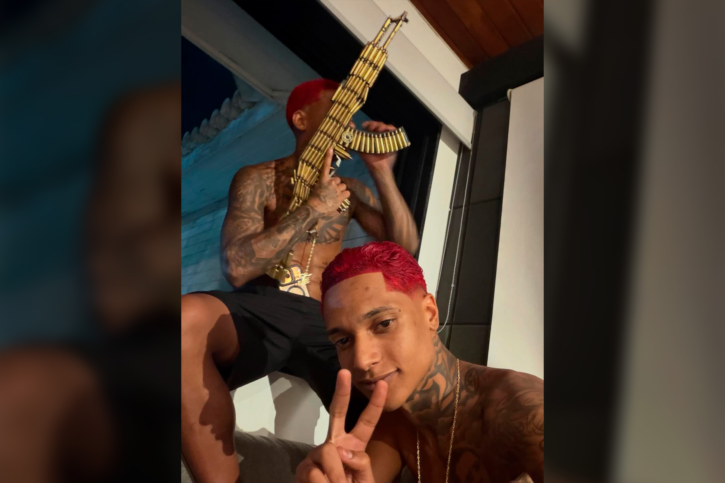 Compartilhar Facebook Twitter Email Copy Link WhatsApp Foragido da Justiça desde fevereiro, Oruam lança novo clipe musical com réplica de fuzil, colete à prova de balas e tornozeleira eletrônica Fonte: