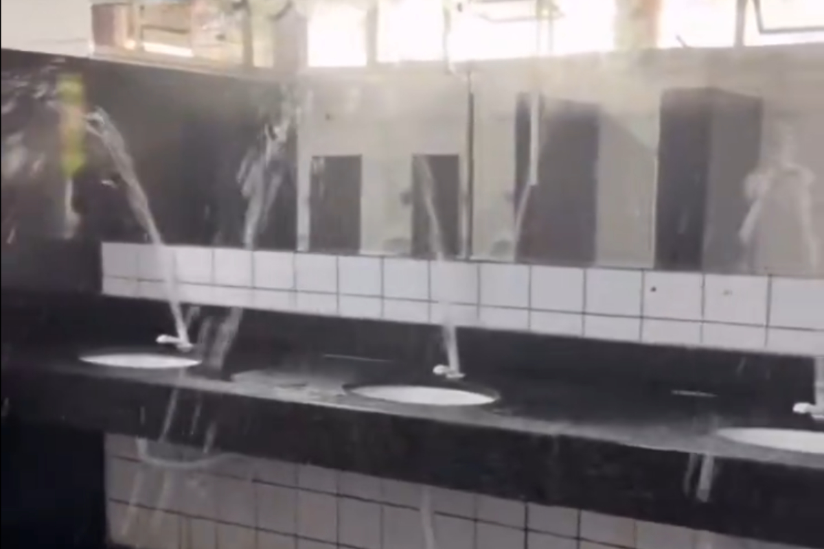 Compartilhar Facebook Twitter Email Copy Link WhatsApp No vídeo, é possível ver as três torneiras jorrando água e causando um alagamento no banheiro masculino de um terminal no ES Fonte: