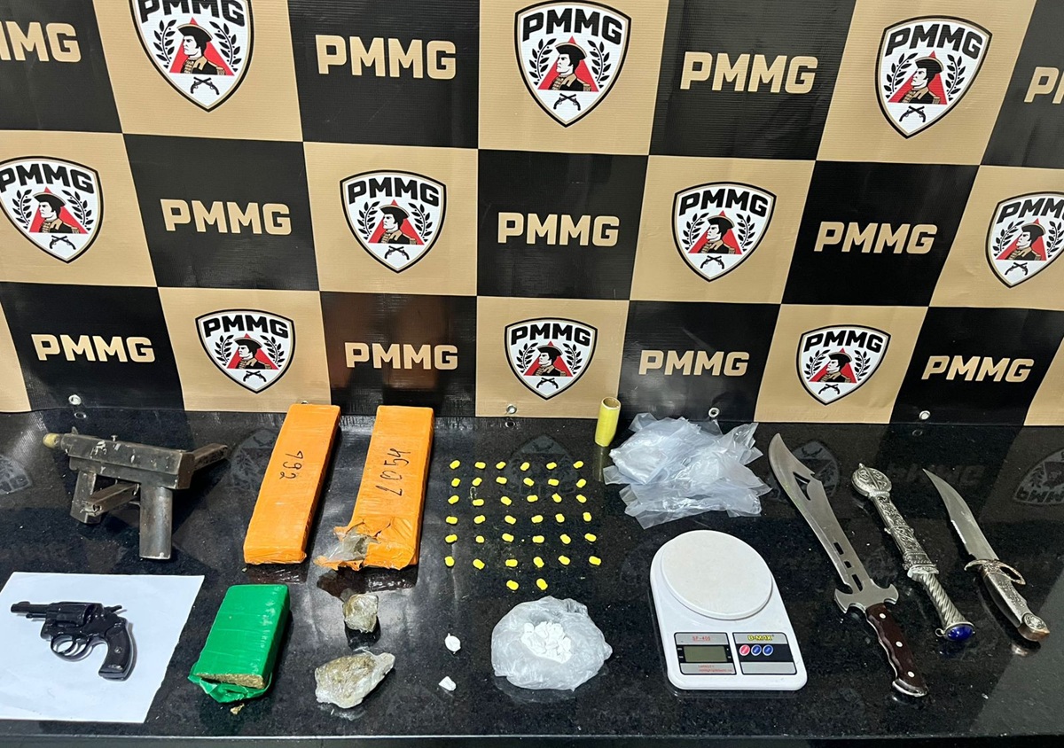 Compartilhar Facebook Twitter Email Copy Link WhatsApp A Polícia Militar apreendeu significativa quantidade de drogas, duas armas de fogo e materiais ligados ao tráfico em Ponte Nova (MG) Fonte: