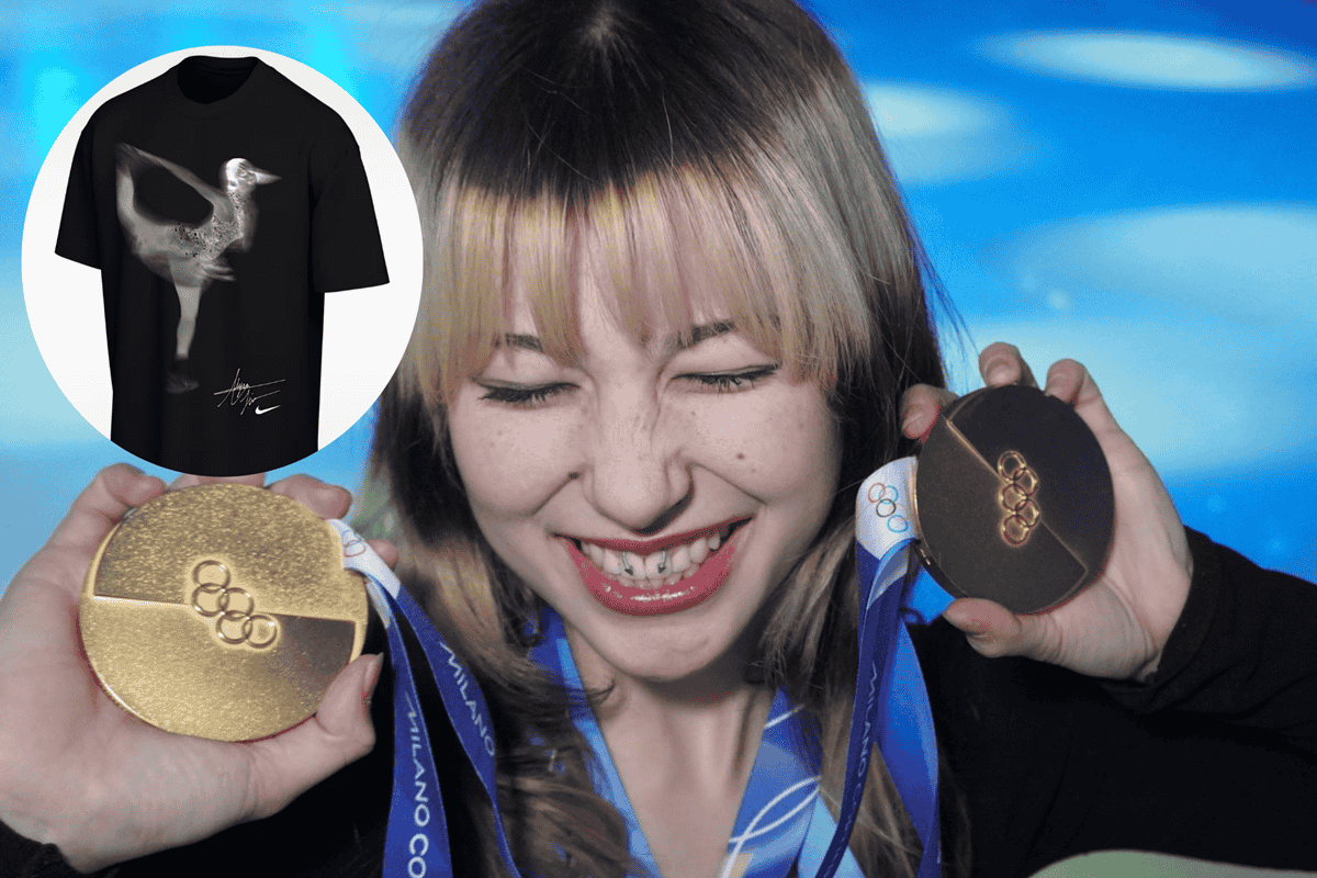 Compartilhar Facebook Twitter Email Copy Link WhatsApp Marca esportiva lançará peças criadas em colaboração com a medalhista olímpica Alysa Liu; estampa recria momento icônico Fonte: