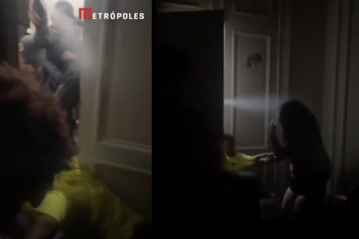 Compartilhar Facebook Twitter Email Copy Link WhatsApp Vídeo gravado por um dos estudantes mostra PM usando spray de pimenta contra os manifestantes que estavam em sala da Secretaria da Educação Fonte: