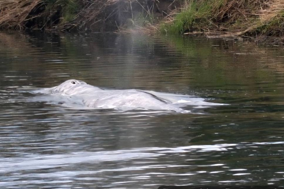 Compartilhar Facebook Twitter Email Copy Link WhatsApp Baleia foi localizada pela primeira vez na última quarta-feira (1º/4), ainda viva. Especialistas sugerem que ela pode ter morrido de fome Fonte: