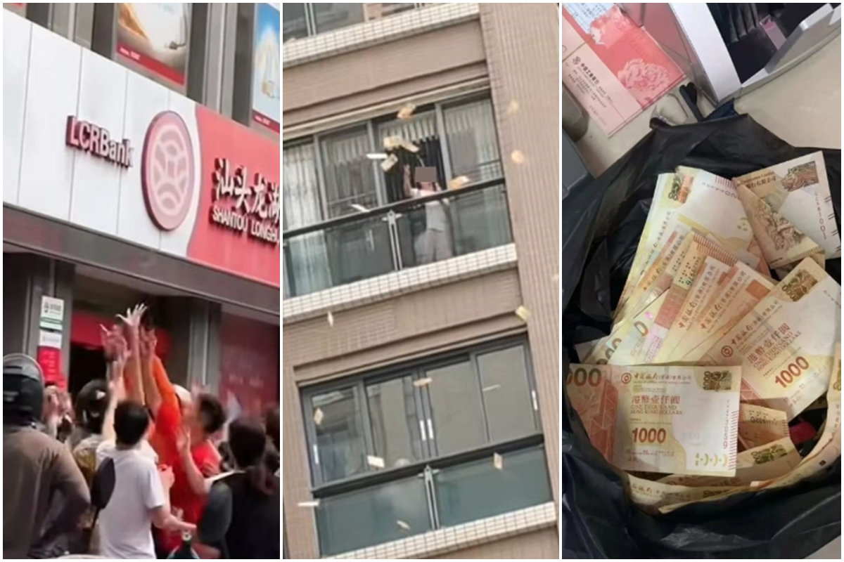 Compartilhar Facebook Twitter Email Copy Link WhatsApp Chuva de dinheiro surpreendeu quem passava pela calçada do prédio da mulher e houve até disputa pelas notas Fonte: