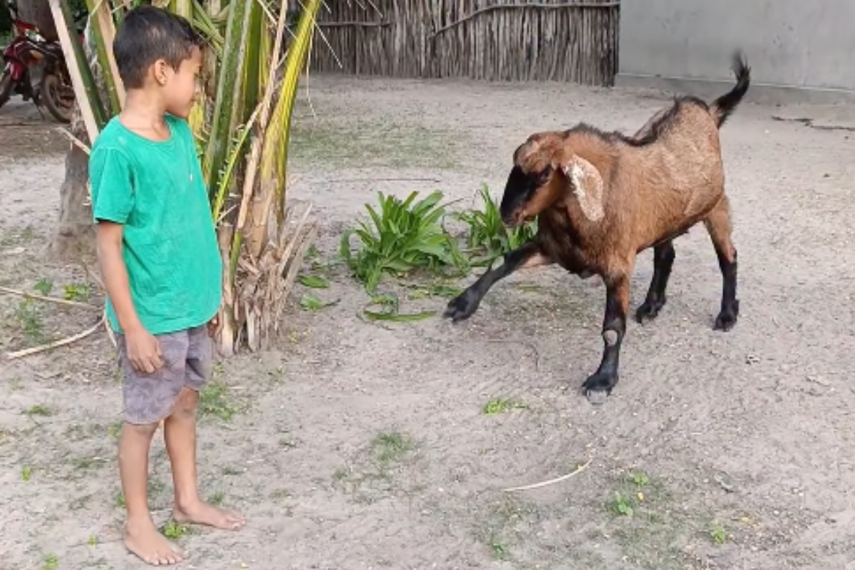 Compartilhar Facebook Twitter Email Copy Link WhatsApp A amizade entre João e seu bode de estimação inspirou um livro, escrito pela irmã mais velha do garoto Fonte: