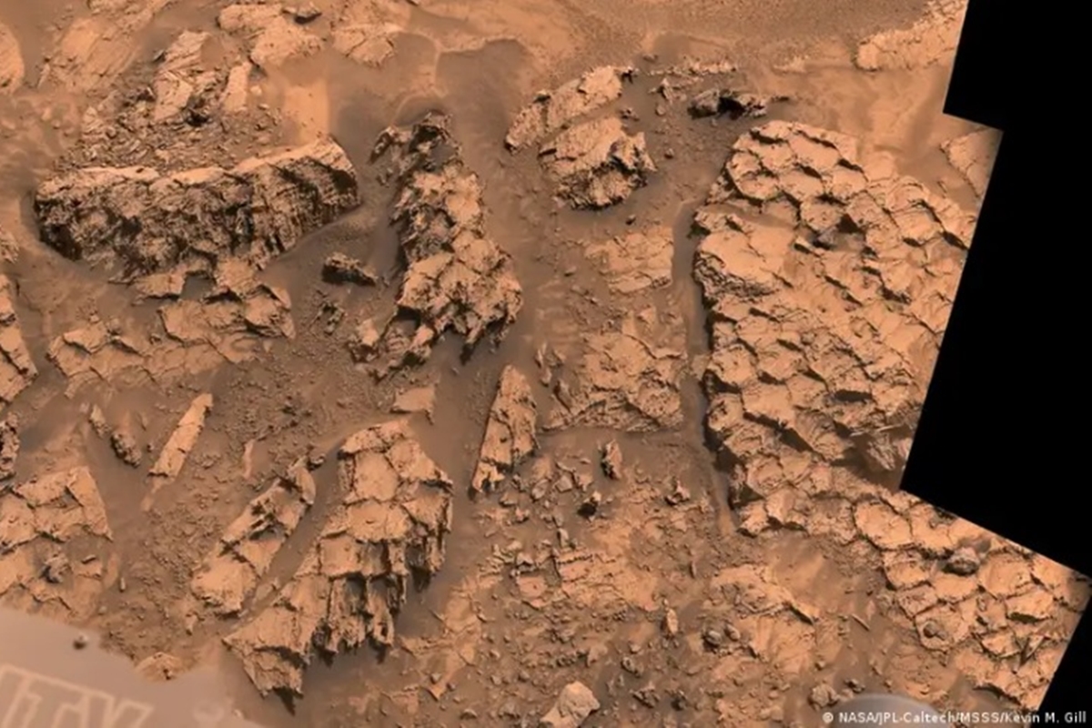 Compartilhar Facebook Twitter Email Copy Link WhatsApp Robô da Nasa encontrou polígonos que se prolongam por metros no solo. Descoberta sugere possíveis condições sazonais ou cíclicas no passado Fonte: