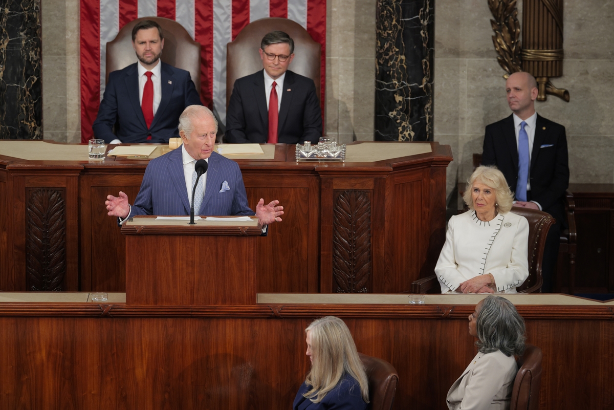 Compartilhar Facebook Twitter Email Copy Link WhatsApp O rei Charles III discursou no Congresso dos Estados Unidos nesta terça-feira (28/4), como parte de uma visita de Estado de quatro dias Fonte: