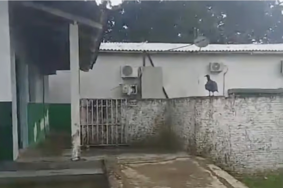 Imagens enviadas ao ac24horas nesta terça-feira (21) mostram a situação precária no local. Em um dos vídeos, uma mulher denuncia o forte mau cheiro e a presença de urubus sobrevoando a unidade de saúde, além de insetos no corpo.